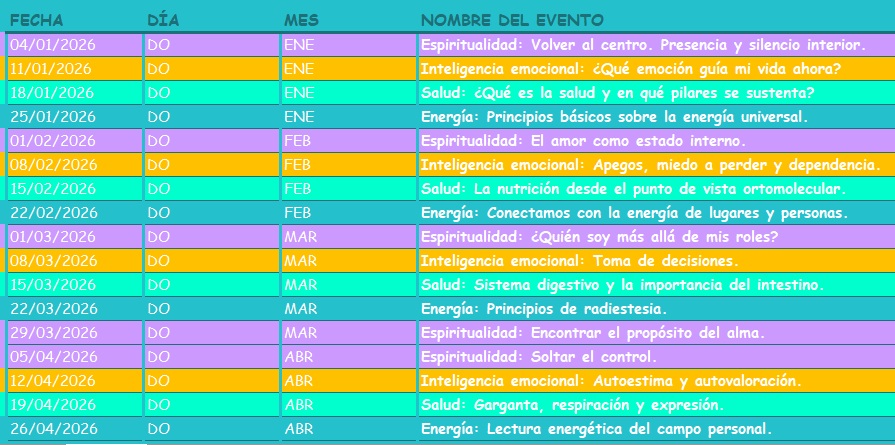 En Centro ALMA comenzaremos el año 2026 con nuevas actividades organizadas todos los domingos, de 9:00 a 11:30 de la mañana.